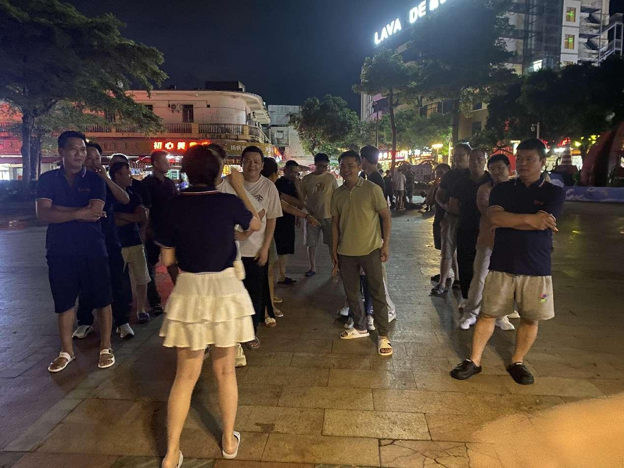 晚上大家一起在廣場上進行有趣的團建活動——比劃猜詞、正話反說、多人跳繩等團隊游戲,大家積極參與并贏得游戲獎品,在一片歡聲笑語中,大家一起坐在海灘上觀賞無垠的星空。