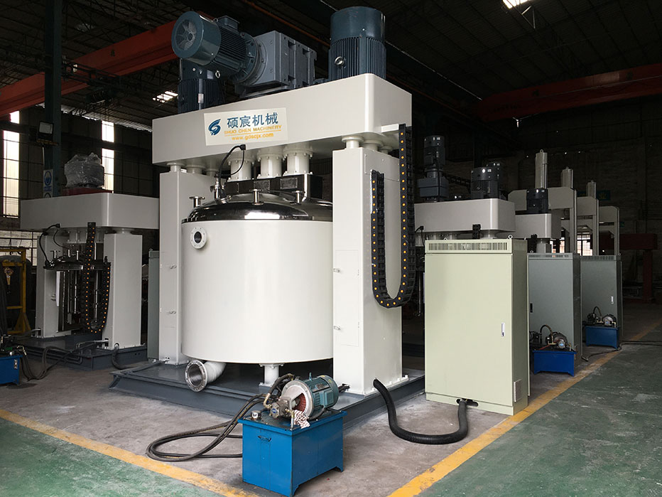 其中強(qiáng)力分散機(jī)(制膠機(jī))是硅酮密封膠、玻璃膠、結(jié)構(gòu)膠的生產(chǎn)設(shè)備中的主要組成部分,也是硅酮膠、玻璃膠的整條生產(chǎn)線中為重要設(shè)備部分。強(qiáng)力分散機(jī)是一種快速攪拌機(jī),有三個(gè)動(dòng)力驅(qū)動(dòng)的電動(dòng)機(jī),釜內(nèi)有三根不同形式、高低速結(jié)合的攪拌器;是一種應(yīng)用行業(yè)廣泛、密封性好、可抽真空、具有良好的脫泡效果、攪拌無死角、高低速結(jié)合、攪拌分散充分快速的混合攪拌設(shè)備。若想要了解更多的工況,您可以提出您所需要的處理量、設(shè)備形式、規(guī)格要求或您需要加工的物料的性質(zhì),根據(jù)您的情況碩宸的銷售工程師會(huì)提供讓您滿意的方案。